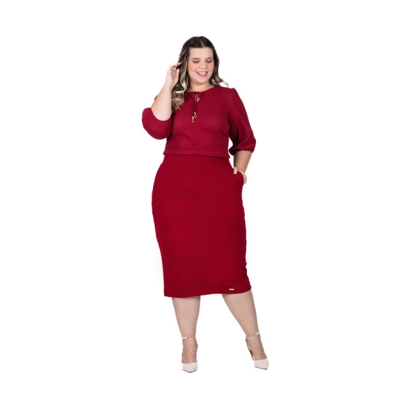 Saia Aldara Em Malha Estruturada Bordô Hapuk