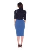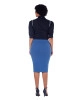 Saia confeccionada em ponto roma, fechamento por zíper traseiro, botões fixos e possui forro.