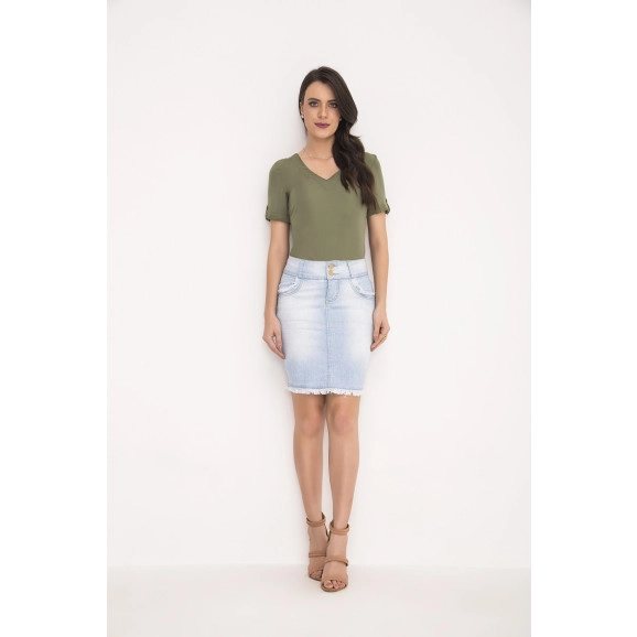 Saia Barra Desfiada Laura Rosa possui detalhe desfiado na barra,bolsos laterais e atrás. Composição do tecido 82%algodão 16%poliester 2%elastano. Saia jeans super despojada e confortável, ideal para correria do dia-a-dia!