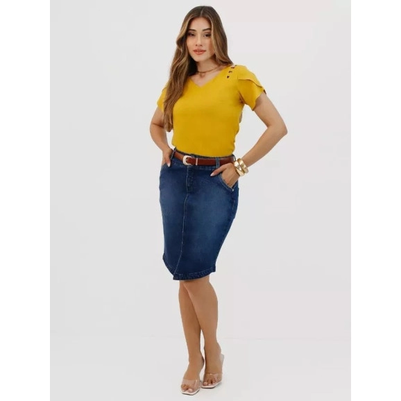 Saia Beatriz Em Jeans First Denim Nítido