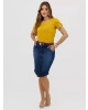 saia jeans no tecido first denim, com shape justo e comprimento secretária, possui detalhe em v na barra com fenda, e bolso traseiro bordado. Acompa nha cinto de couro.