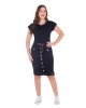 Saia confeccionada em jeans color, fechamento frontal por botões, cós com ilhós e corrente e bolsos funcionais.