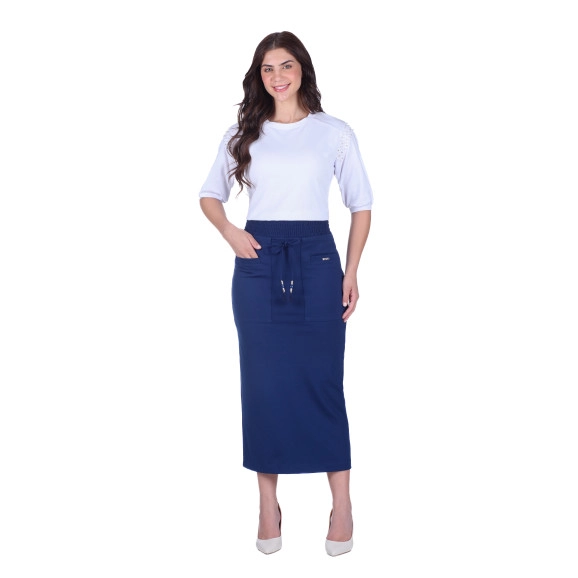 Saia Brenda Em Ponto Roma Azul Marinho Hapuk