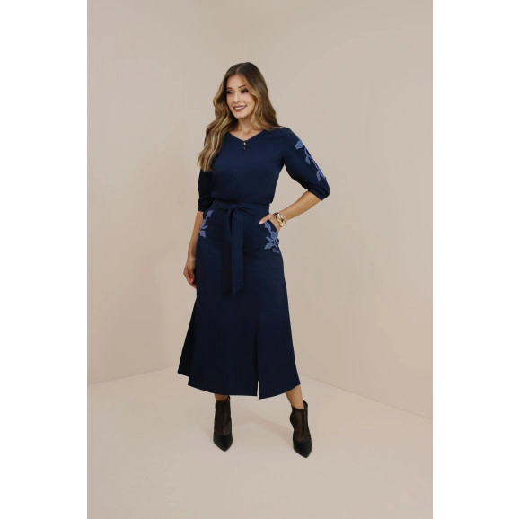 Saia Calendula Com Fendas Frontais Azul Noite Plus Size Nitido