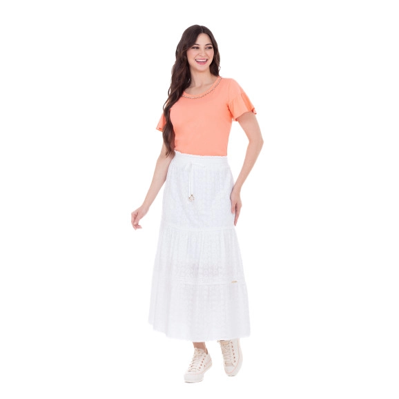 Saia Carlota Em Tecido Plano Laise Com Forro Branca Hapuk