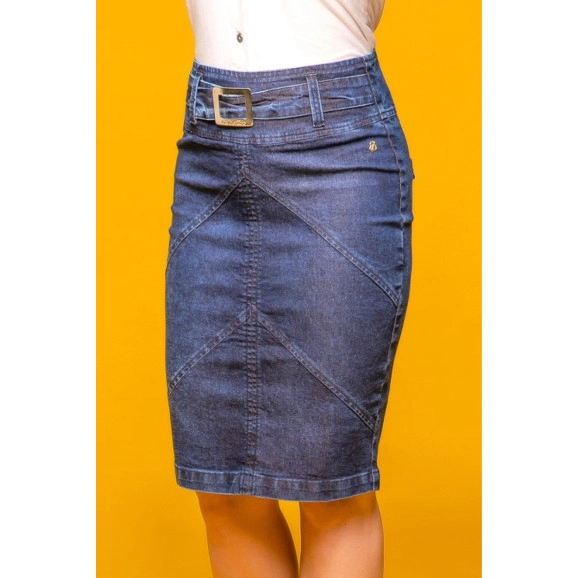 Saia Clássica Via Tolentino modelagem justa, detalhe em fivela, bolsos e fechamento em zíper atrás. Composição do tecido 81%Algodão 17%Poliester 2%elastano. Crie looks delicados e super femininos.