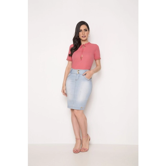 Saia Clear Laura Rosa ; modelagem tradicional,bolsos laterais e atrás. Composição:82% 16% Poliester 02%Elastano. Aquela saia básica e linda que combina com qualquer t-shirt!