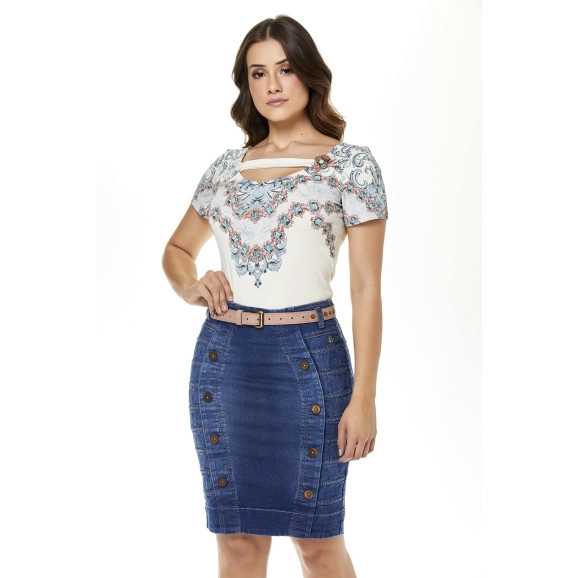 Produto: Saia com Detalhe em Botões Via Tolentino