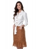 Saia de lese, forrada, com bolso, babados e botões como detalhe.