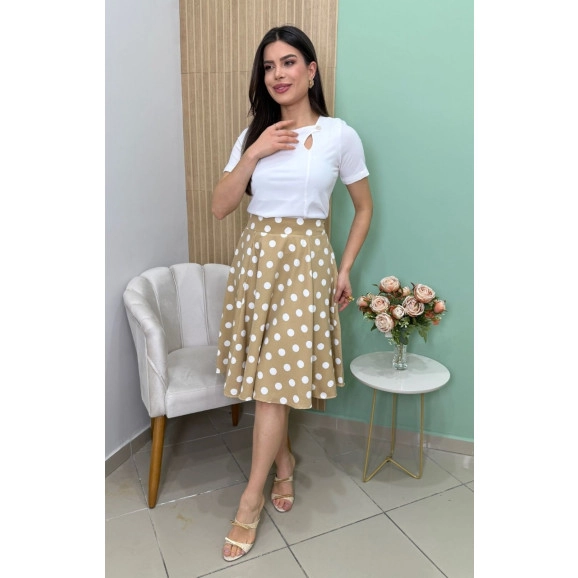 Saia Deise Em Afaiataria Poá Bege Maria Amore