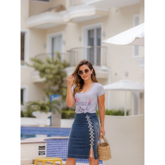 Produto: Saia Detalhe em Cordão Raje Jeans