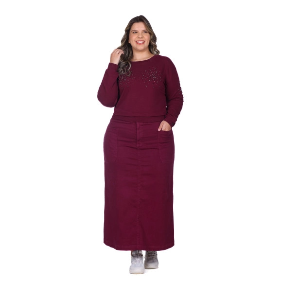 Saia Eleanor Em Jeans Color Bordo Hapuk
