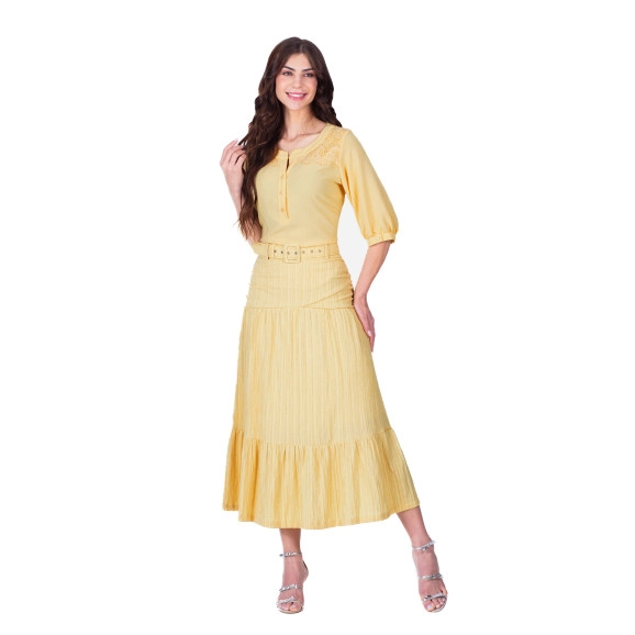 Saia Eloa Em Tecido Plano Texturizado Amarelo Hapuk
