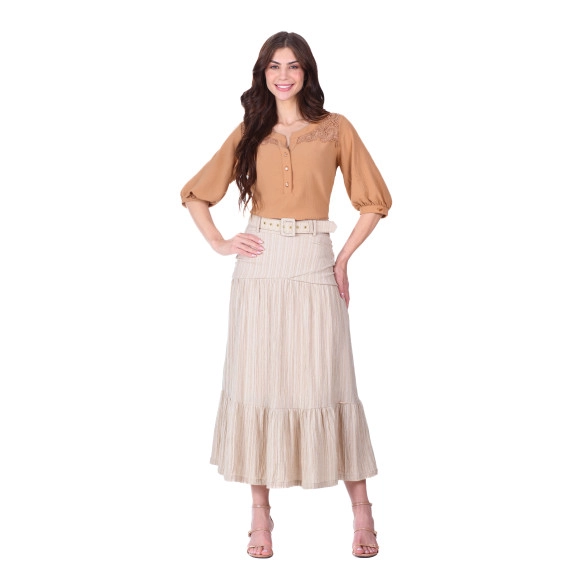 Saia Eloa Em Tecido Plano Texturizado Bege Hapuk