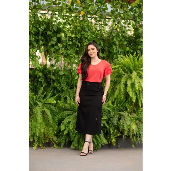 Saia Em Linho Evasê Preta Mulher Morena