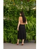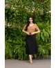 Saia confeccionada no linho modelo evase comprimento midi forrada detalhe de recortes horizontais no comprimento e fecho de ziper na parte de trás