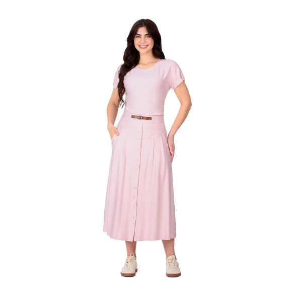 Saia Fatima Em Malha Viscose Rosa Hapuk