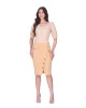 Saia confeccionada em malha estruturada, cós com elástico interno, frente com recorte falso, botões fixos, detalhe de faixa com fivela, bolso funcional e possui forro. Composição: 96% viscose 4% elastano forro 100% poliester