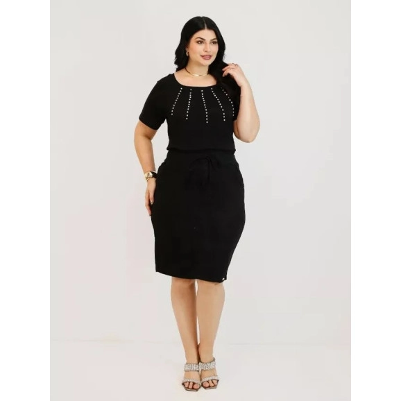 Saia no tecido becky plus no comprimento secretária cós de ribana com detalhe de amarração no centro do cós. Bolso frontal e traseiro e fenda.