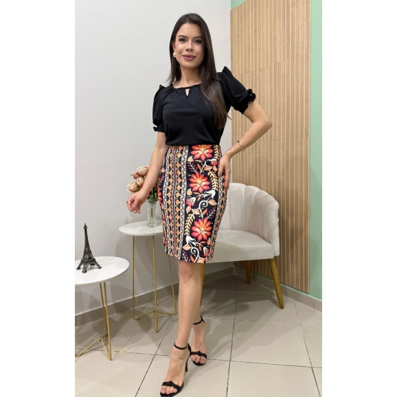 Saia Janaína Em Malha Montaria Estampada Maria Amore