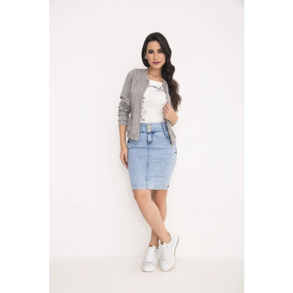 As saias jeans basica são uma excelente opção para compor um look do seu dia-a-dia!