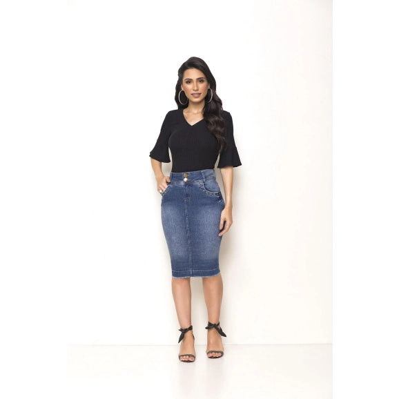 Saia Jeans Tradicional Laura Rosa