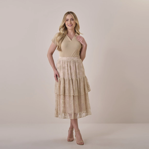 Saia Josileny Em Tule Bege Jeans Tatá Martello