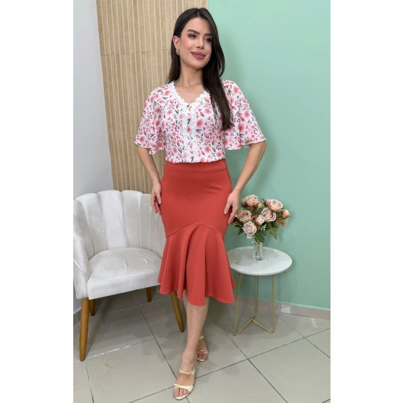 Saia Juliana Em Malha Montaria Terracota Maria Amore