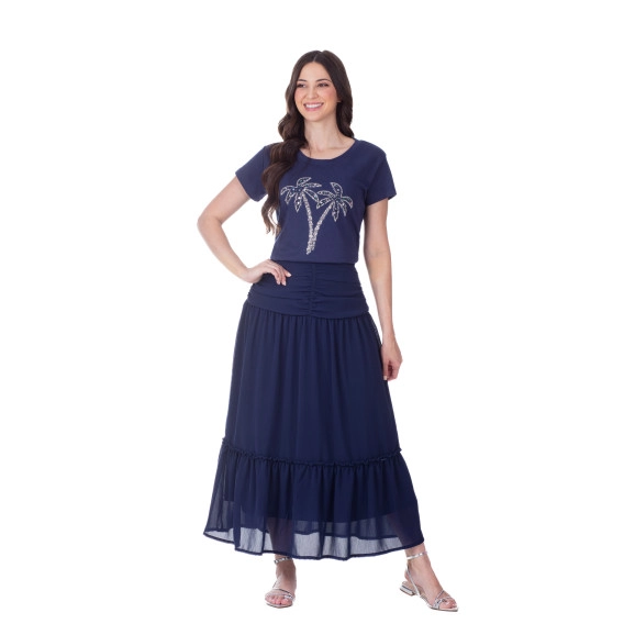 Saia Kelly Em Tecido Plano Azul Marinho Hapuk