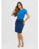 saia malha denim com fechamento em botão e zíper de metal. Possui bolso com bordado de pesponto na boca. corte reto e tamanho secretária