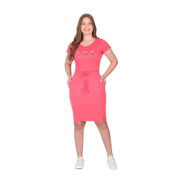 Saia confeccionada em moletinho e ribana, cós em ribana com elástico interno, canaleta com viés e ponteiras, bolsos funcionais, detalhe em pregas e possui forro.