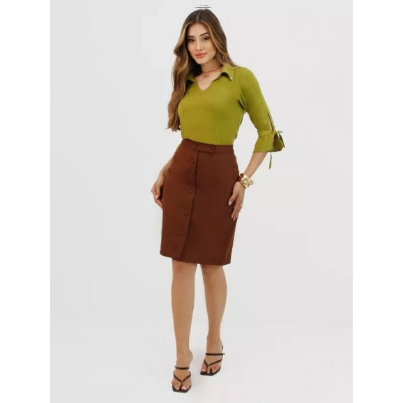 Saia Lily Em Alfaiataria Secretária Marrom Nítido