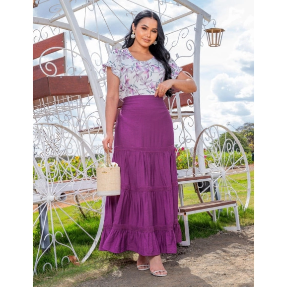 Saia Linda Em Crepe Alfaiataria Roxa Maria Amore