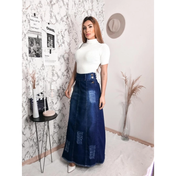 Saia Longa com Botões Najila Jeans