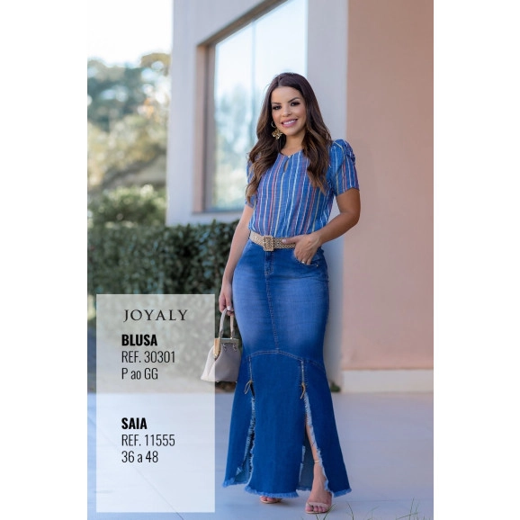 A Saia Longa com Fenda Joyaly foi confeccionada em tecido jeans com fenda, possui desfiado na barra, detalhe em zíper, bolsos laterais e atrás. Composição do tecico 77%algodão 21%poliester. Acompanha cinto. Saia longa super despojada para você arrasar!