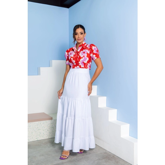 Saia Longa Marias Em Crepe Branca Luciana Pais