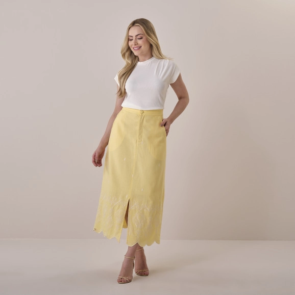 Saia Luciana Em Algodão Bordado Amarelo Tata Martello