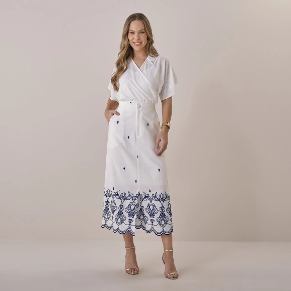 Saia Luciana Em Algodão Bordado Branco Tata Martello