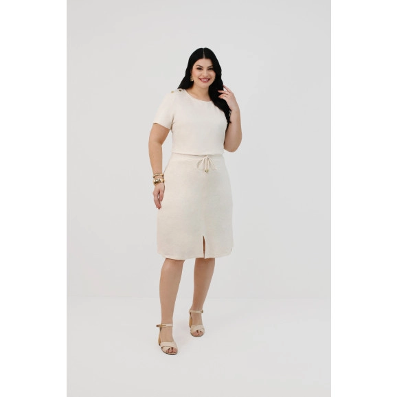 Saia Luna Plus Em Malha Linen Off White Nítido