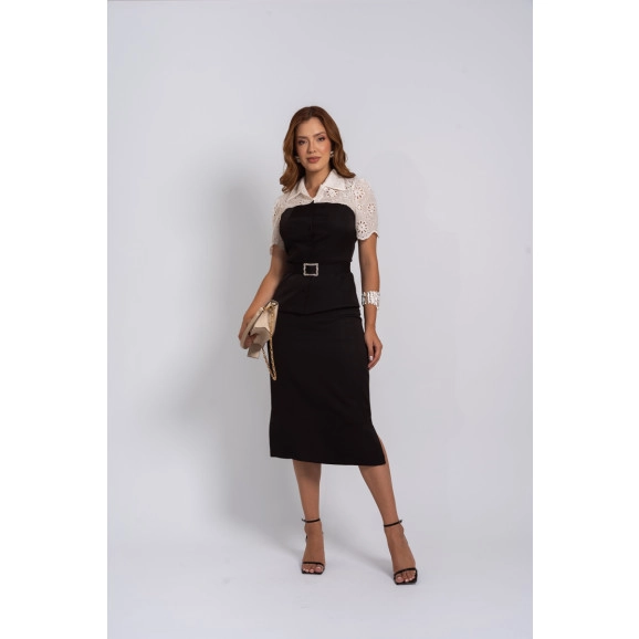 Saia midi em Alfaiataria com Fendas Luciana Pais