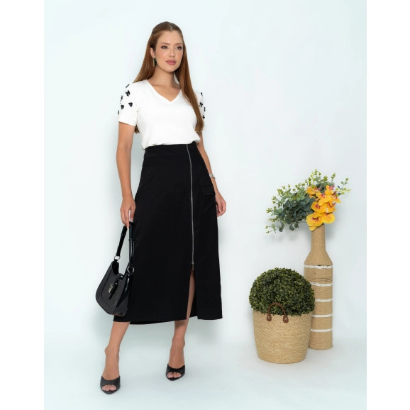 Saia midi em alfaiataria premium e det.ziper de metal na frente (91% viscose 09% poliéster) Tamanho 38 ao 50
