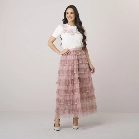 Saia Morgana Em Tule Com Crepe Rose Tata Martello