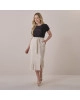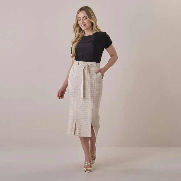 Saia Samanta Em Llinho Risca De Giz Bege Tatá Martello