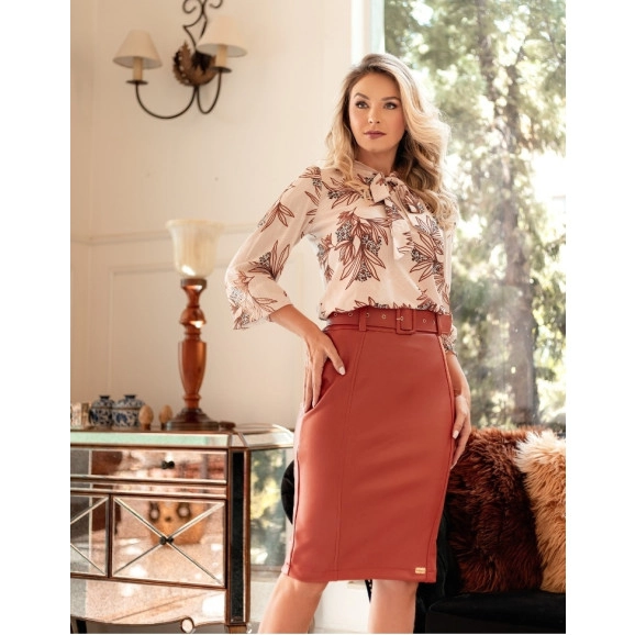 Saia Paloma Terracota Em Couro Sintético Maria Amore