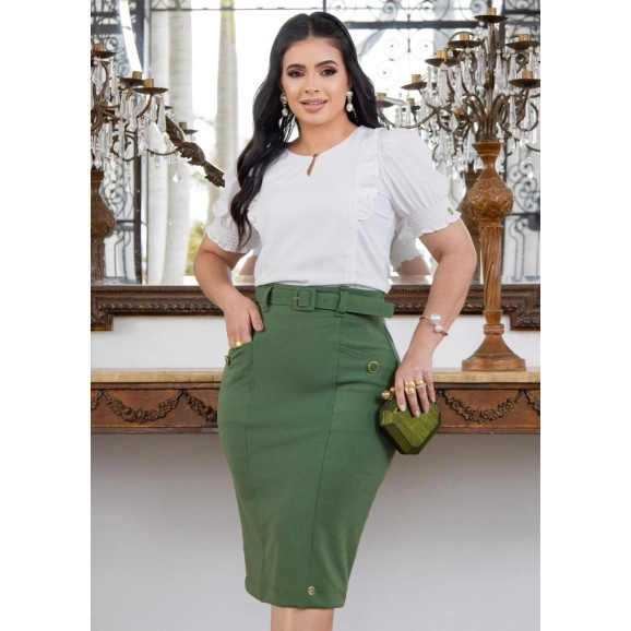 Saia Paula Em Malha Montaria Verde Maria Amore