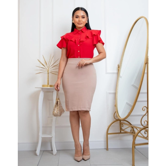 Saia Paula Em Malha Poliamida Bege Maria Amore