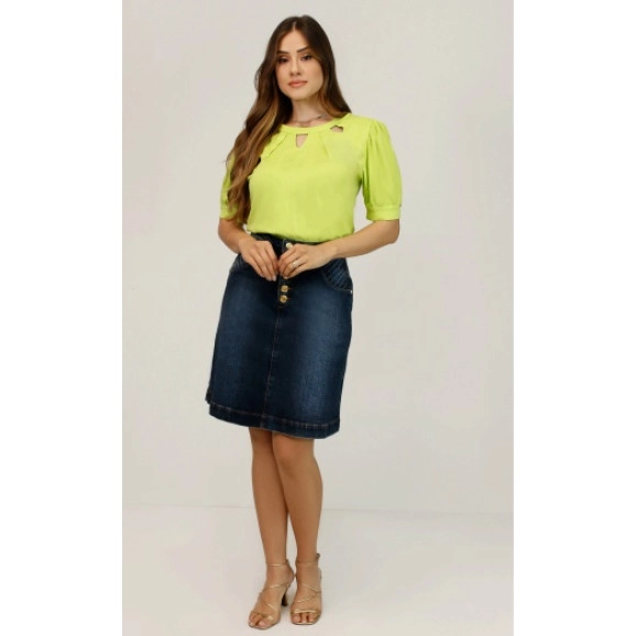 Saia Pietra Jeans com Botões Funcionais Nítido