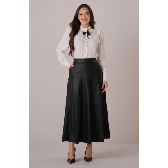 Saia Roberta Em Couro Eco Preta Tata Martello
