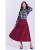Saia em tecido plano de viscose, fechamento lateral por zíper invisível e detalhe em pregas.