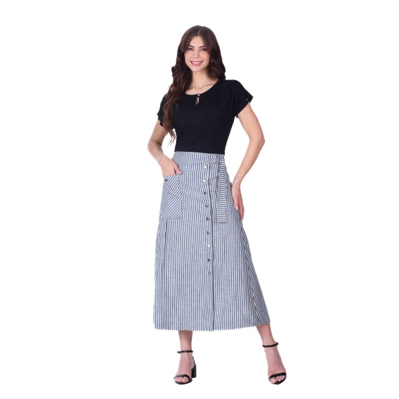 Saia Samila Em Jeans Listrado Azul Noite Hapuk